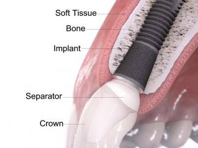 Ein Zahnimplantat ist eine künstliche Zahnwurzel aus Titan oder Keramik die einen fehlenden Zahn ersetzt. Dies bietet für den Patienten einige Vorteile: Es muss kein gesunder Zahn für eine Brücke geschliffen werden; der Knochenabbau des Kieferkammes, der bei einem Zahnverlust zwangsläufig eintritt, wird vorgebeugt. Der künstliche Zahn wird optisch von den natürlichen nicht zu unterscheiden sein.